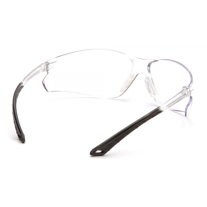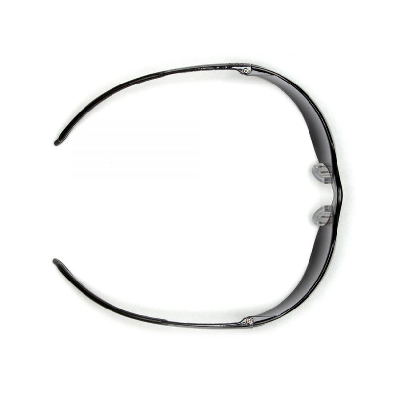 Soft integrated nose piece. Lightweight, frameless protection is ideal for all-day wear. Soft dual injected rubber temple tips provide non-slip comfort. 9.75 base curve lens provides excellent side protection. Scratch resistant polycarbonate lens provides 99% UVA/B/C protection.